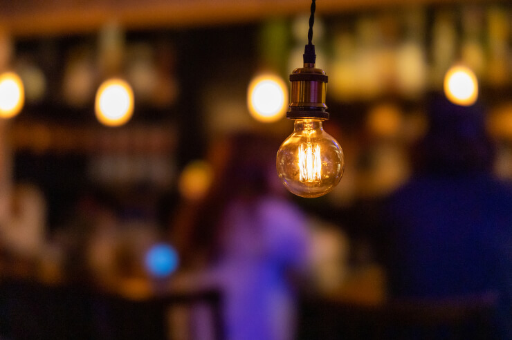 バーは落ち着いた空間を演出する上で、照明の明るさが店内の雰囲気を左右します。コンセプトに沿って照明の明るさは工夫しましょう。雰囲気なども考慮して照明はできる限り、明るすぎないようにしたり、ネオンカラーを取り入れたりするのもおすすめです。